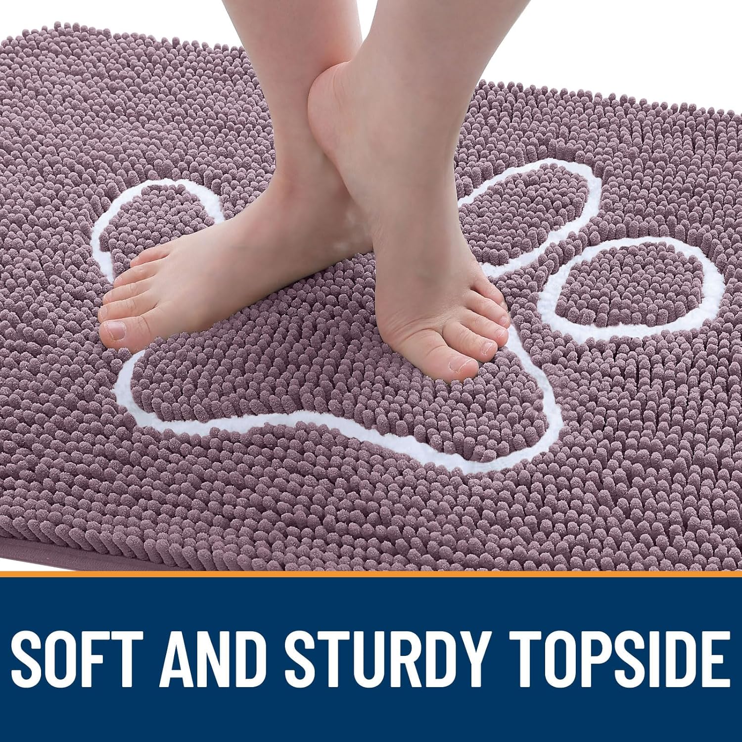 OLANLY Door Mat for Muddy Dog Paws 30x20, Absorbent Chenille Mud Doormat with Paw Print Design, Non-Slip Washable Doormat for Indoor Entryway, Quick-Dry Pet Bed Mats for Dirty Dogs, Deep Plum