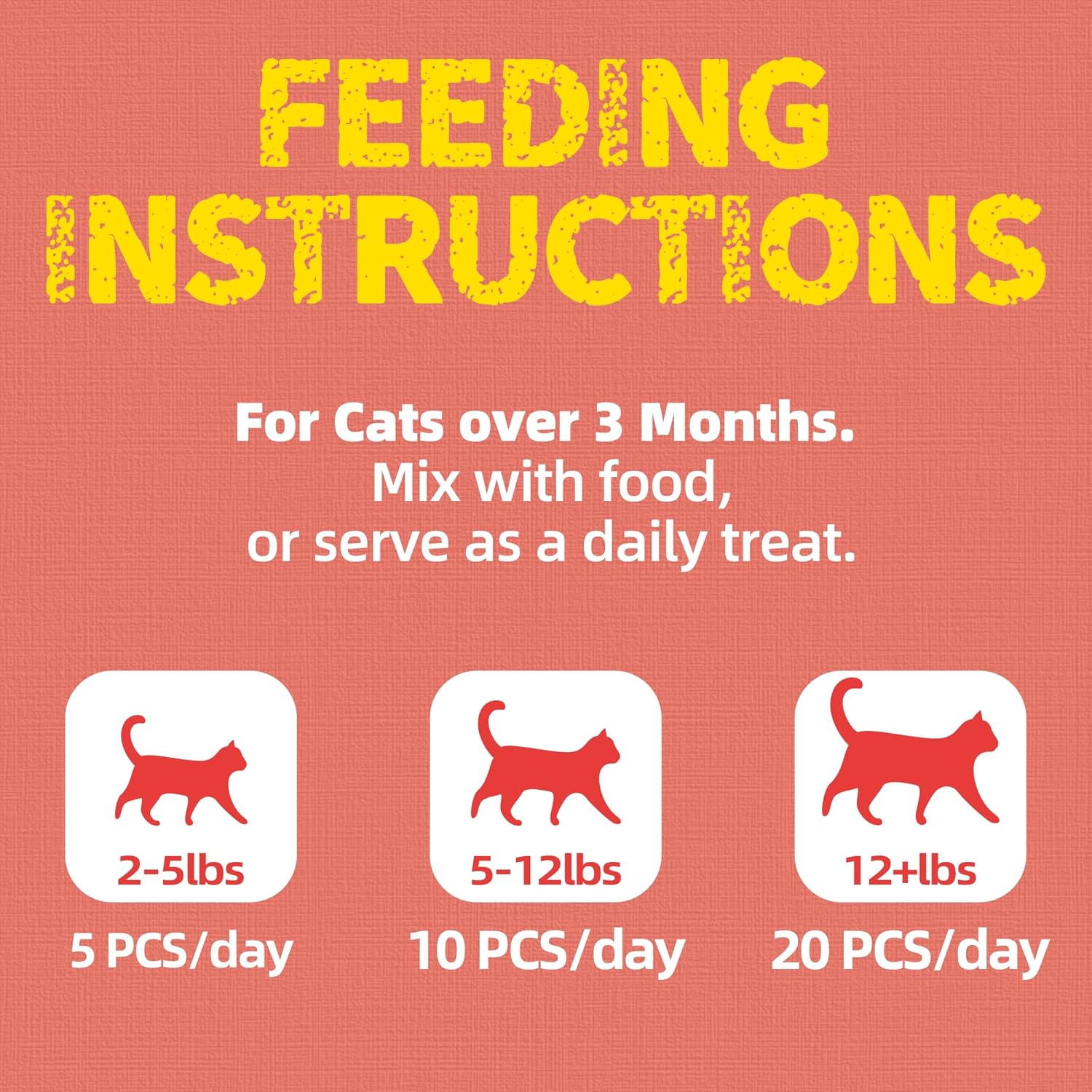 • Low-Calorie cat snacks:With fewer than 1.3 calories per treat, these healthy cat treats are safe for cats of all ages and sizes, from playful kittens to senior cats. The crunchy cat treats texture makes them easy to chew, and the irresistible taste ensures your feline friend will eagerly look forward to snack time. Plus, sharing these kitten treats is a great way to bond with your pet!
