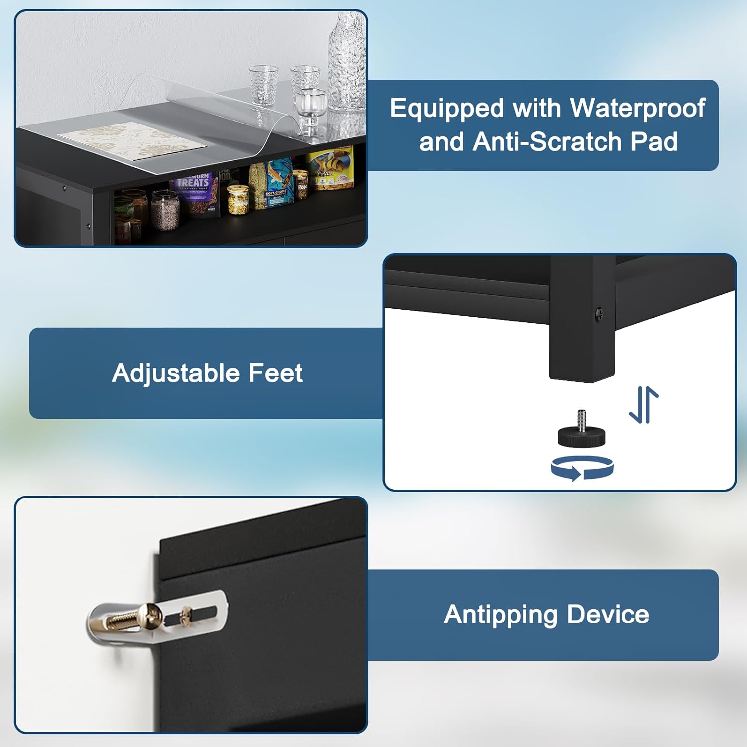 • Power Outlet – Never worry about tangled cords again! This advanced aquarium stand comes equipped with a built-in power strip featuring 3 AC outlets and 2 USB ports, making it effortless to power heaters, filters, pumps, and LED lights—all while keeping wires neatly organized.