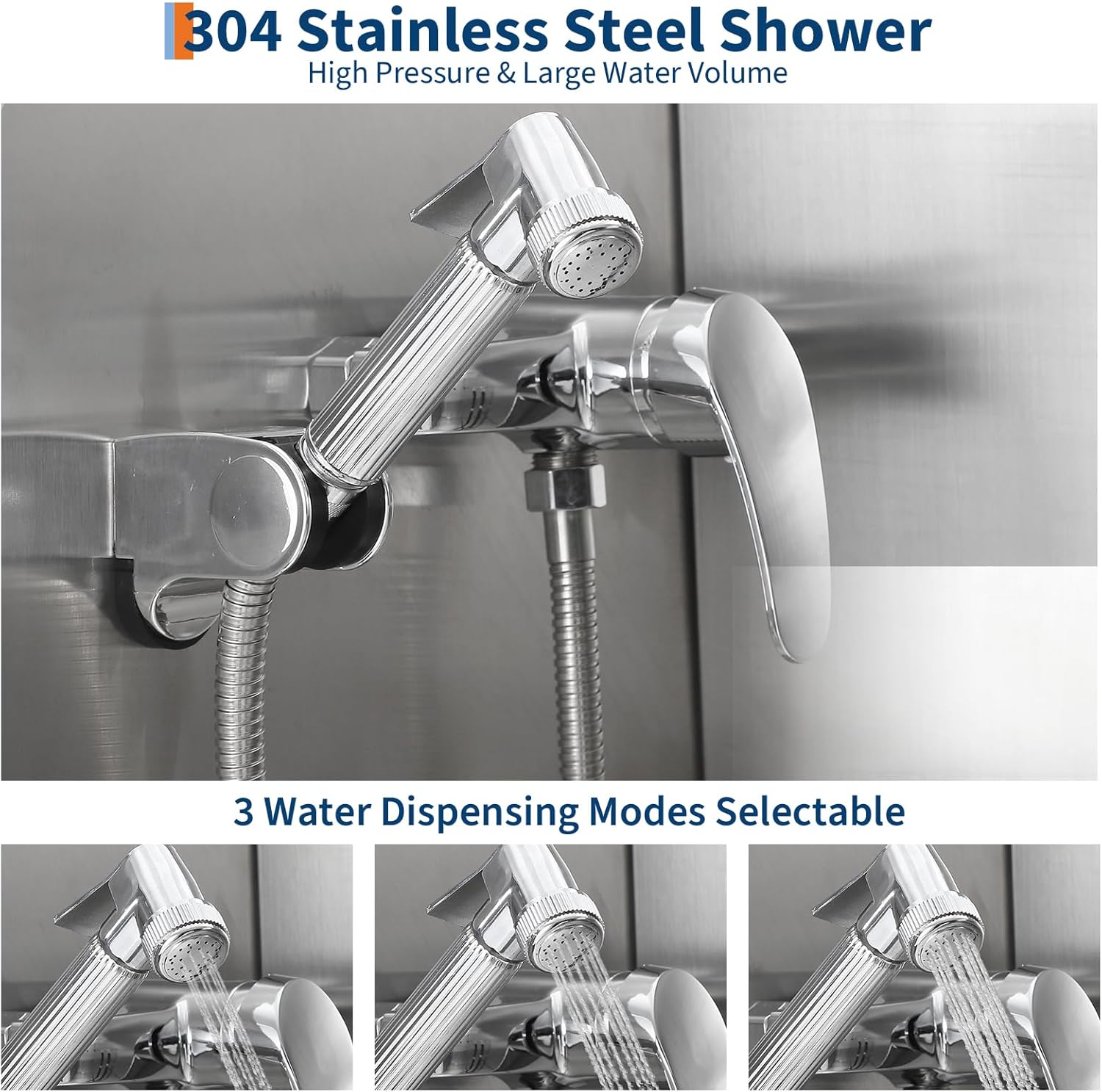 • Multi-Functional Shower System & Upgraded Filter — Cleaner & Safer:Equipped with a stainless steel shower head, detachable sprayer, and upgraded water filter board, this dog wash station guarantees a clean, safe, and hygienic dog bath. The adjustable shower provides thorough cleaning for dogs of all sizes, while the filter prevents clogging, extending the life of the dog washing tub.