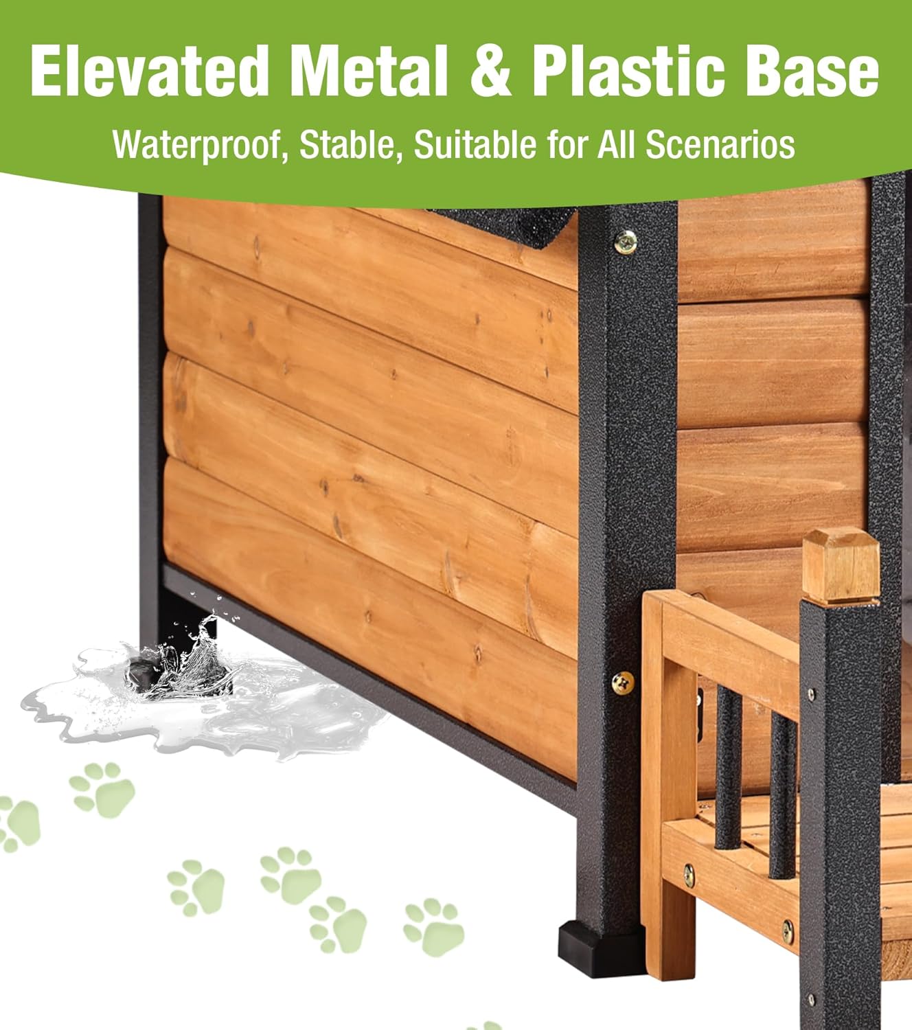 • 𝐄𝐋𝐄𝐕𝐀𝐓𝐄𝐃 πŒπ„π“π€π‹ & ππ‹π€π’π“πˆπ‚ 𝐁𝐀𝐒𝐄 π…πŽπ‘ π’π“π€ππˆπ‹πˆπ“π˜ - This large dog house features an elevated metal-plastic base for waterproofing and stability. The raised design keeps the main area dry/clean, fitting all scenariosβ€”rainy days to snowy winters