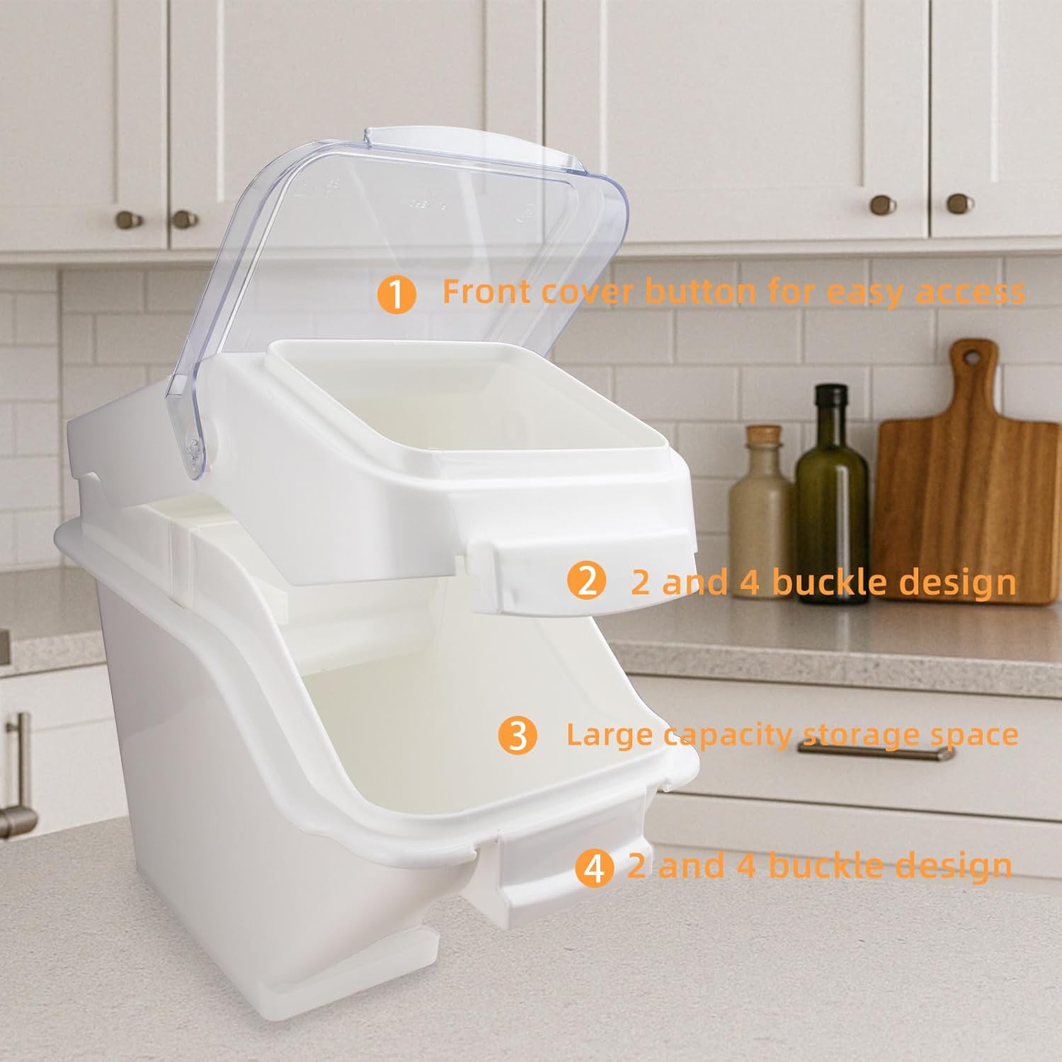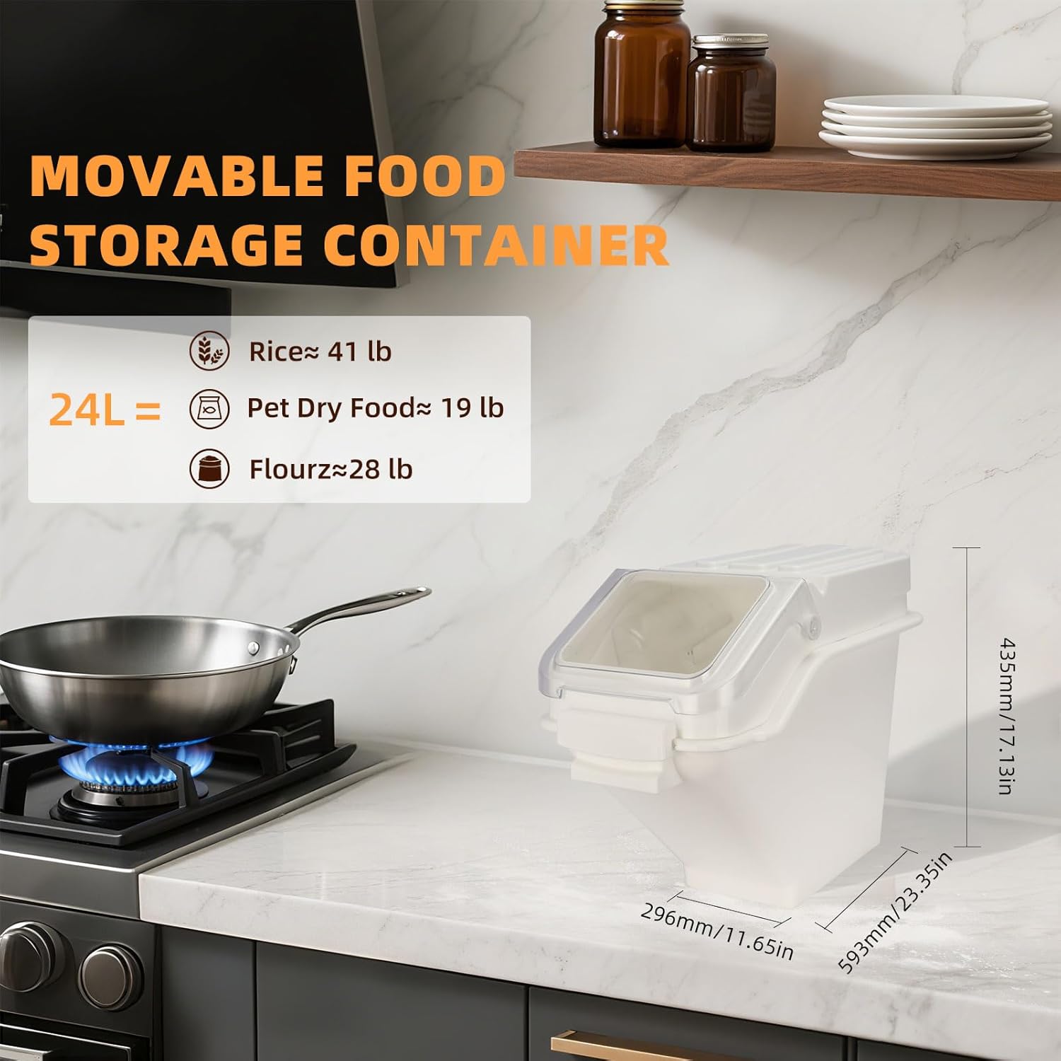 • 4. 【Tiered Capacity & Flexible Use】Available in 3 optimized sizes:10L (holds ~4.5kg / 10lb flour)24L (holds ~11kg / 24lb flour)47L (fits standard 25kg/55lb flour sacks*).Perfect for household pantries to commercial kitchens – scales seamlessly with your storage needs.