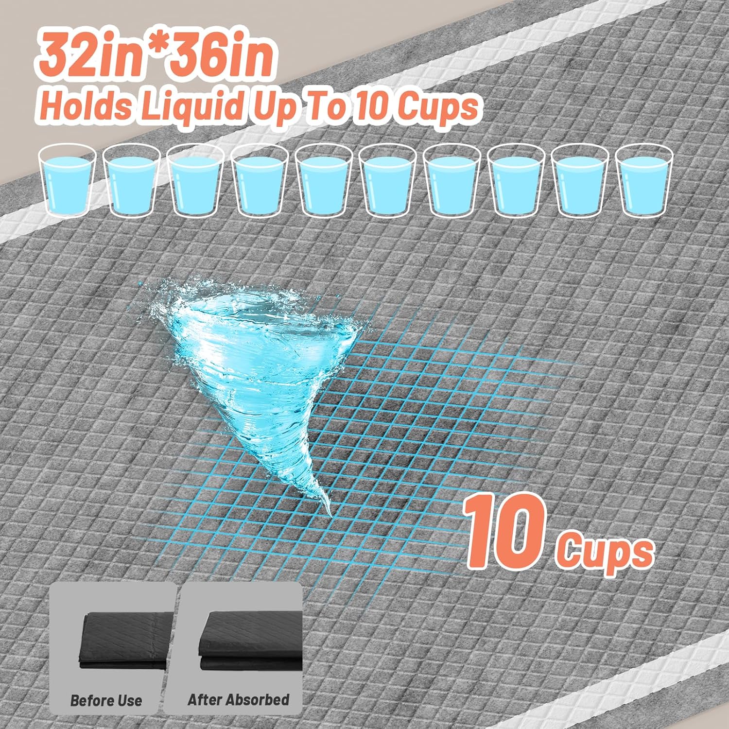 40PCS Charcoal Pee Pads for Dogs 32"x36", Extra Large Odor-Control Carbon Puppy Pads, Ultra-Absorbent & Quick Dry, Thicken Potty Training Pads for Doggie Cats Rabbits, Black Pet Piddle Pad