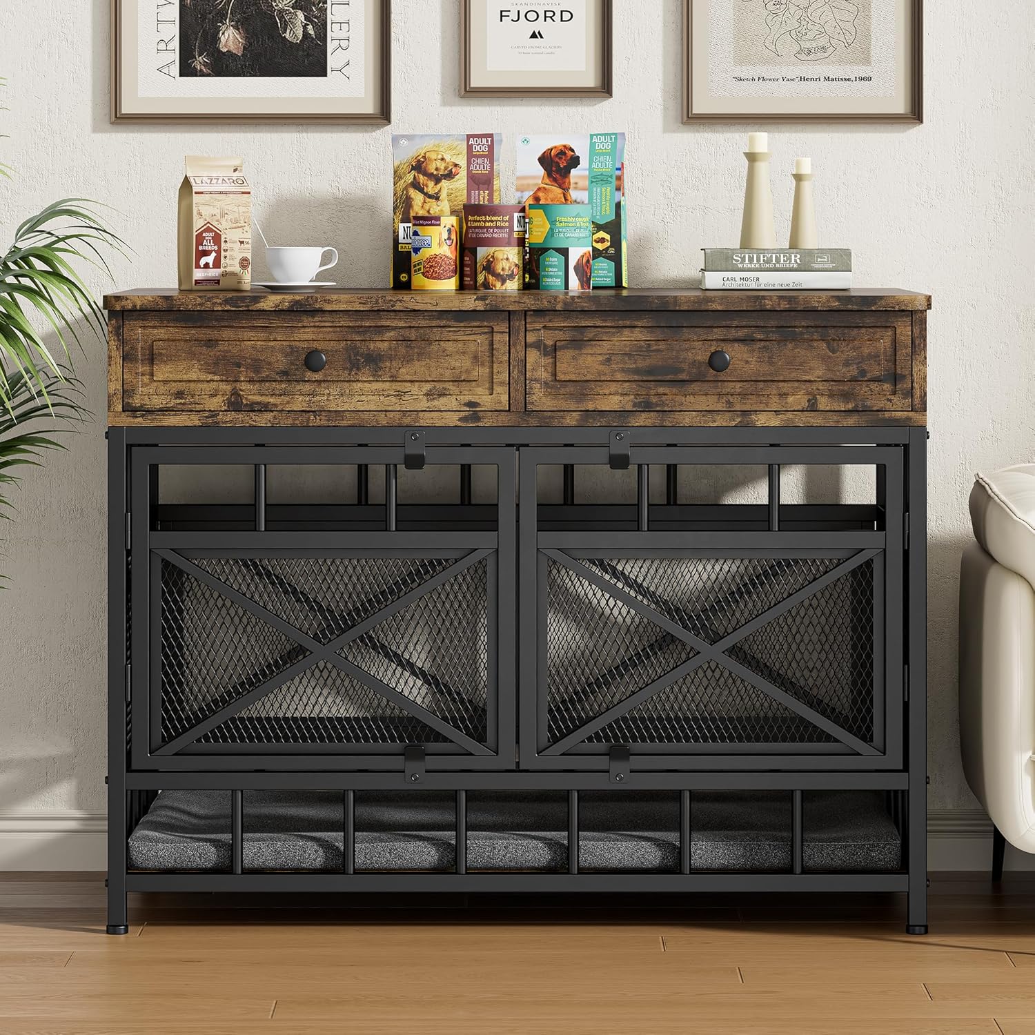 • Large Storage Space: Compared with ordinary dog cage furniture, we specially designed double-layer drawers + wide desktops to easily store pet supplies, toys and other sundries, making the living space of your dog more tidy and orderly, and you can also worry less