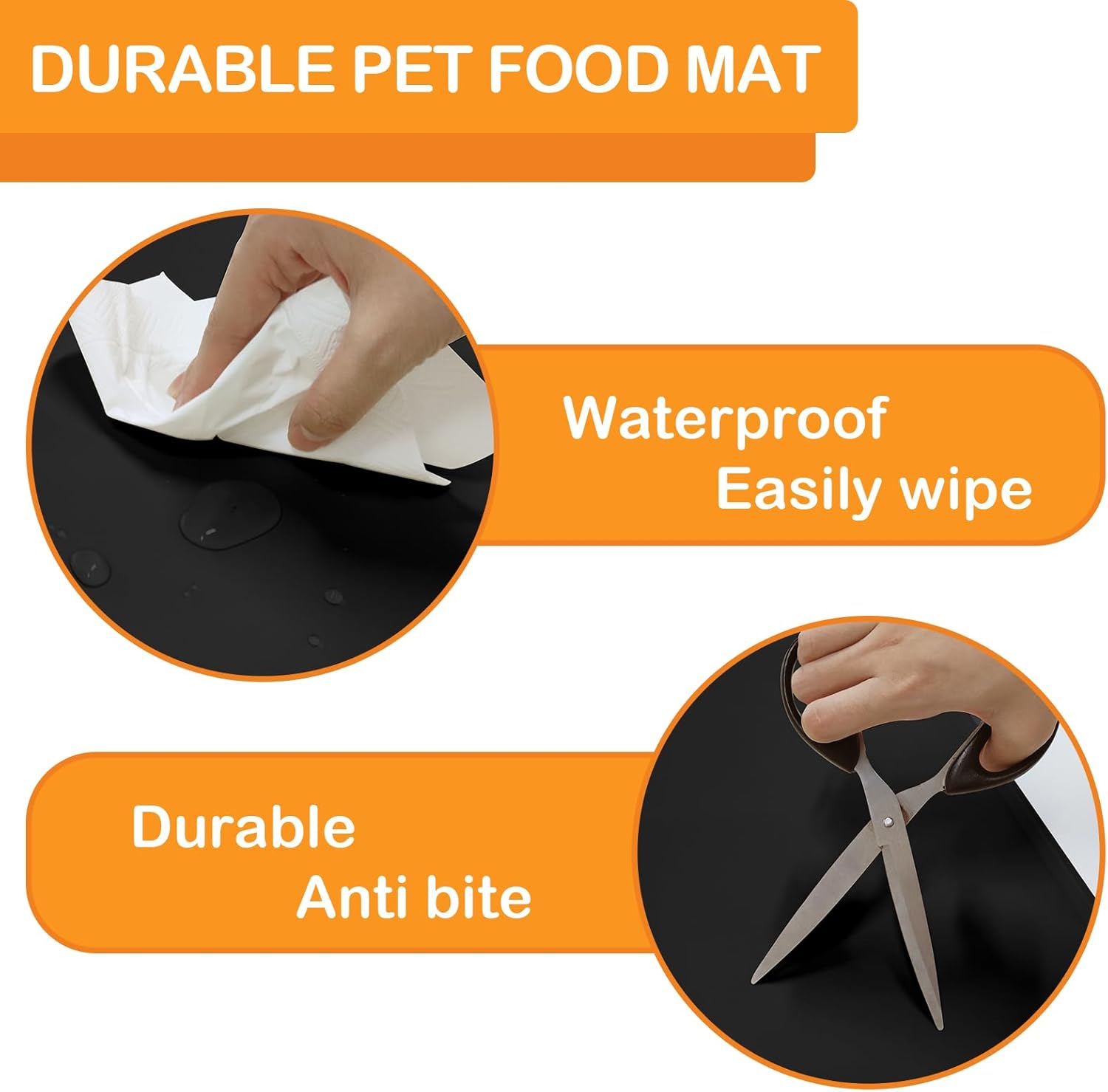 • 【Dog Bowl Mat GREAT QUALITY】This pet food bowl mat is made of 100% silicone, waterproof and non-slip.With raised edges, can protect water and food from overflowing, keeping your floor tidy.