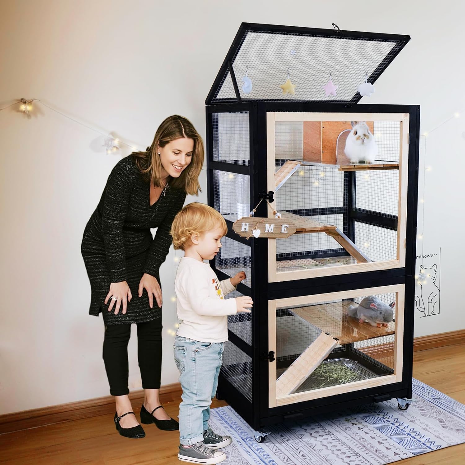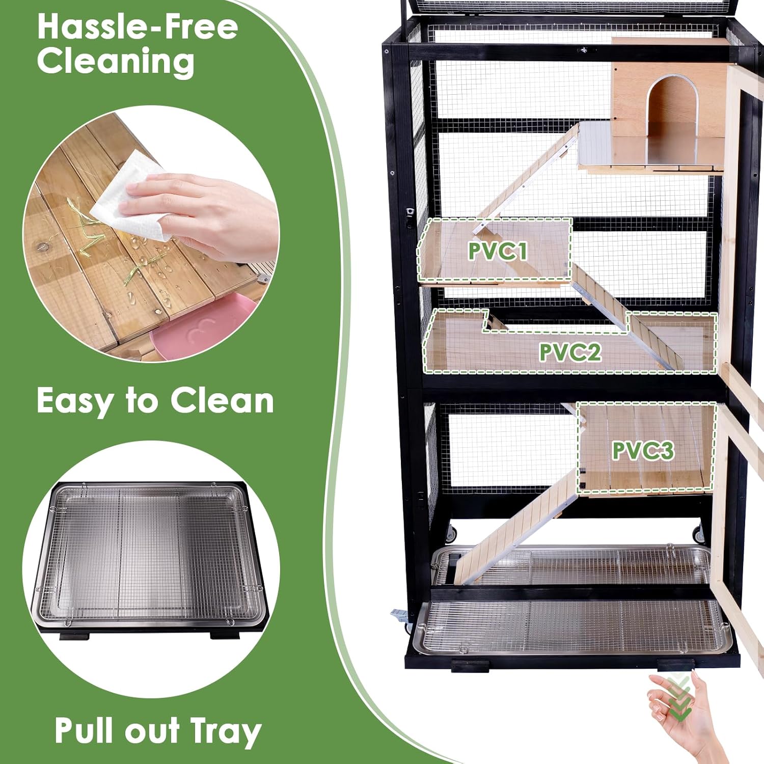 • Hassle-Free Cleaning‌:Slide-out stainless steel tray and large front doors make cleaning easy. Say goodbye to stubborn stains! The detachable PVC-coated surfaces wipe clean in seconds—ideal for ‌large critter nation cage‌ maintenance