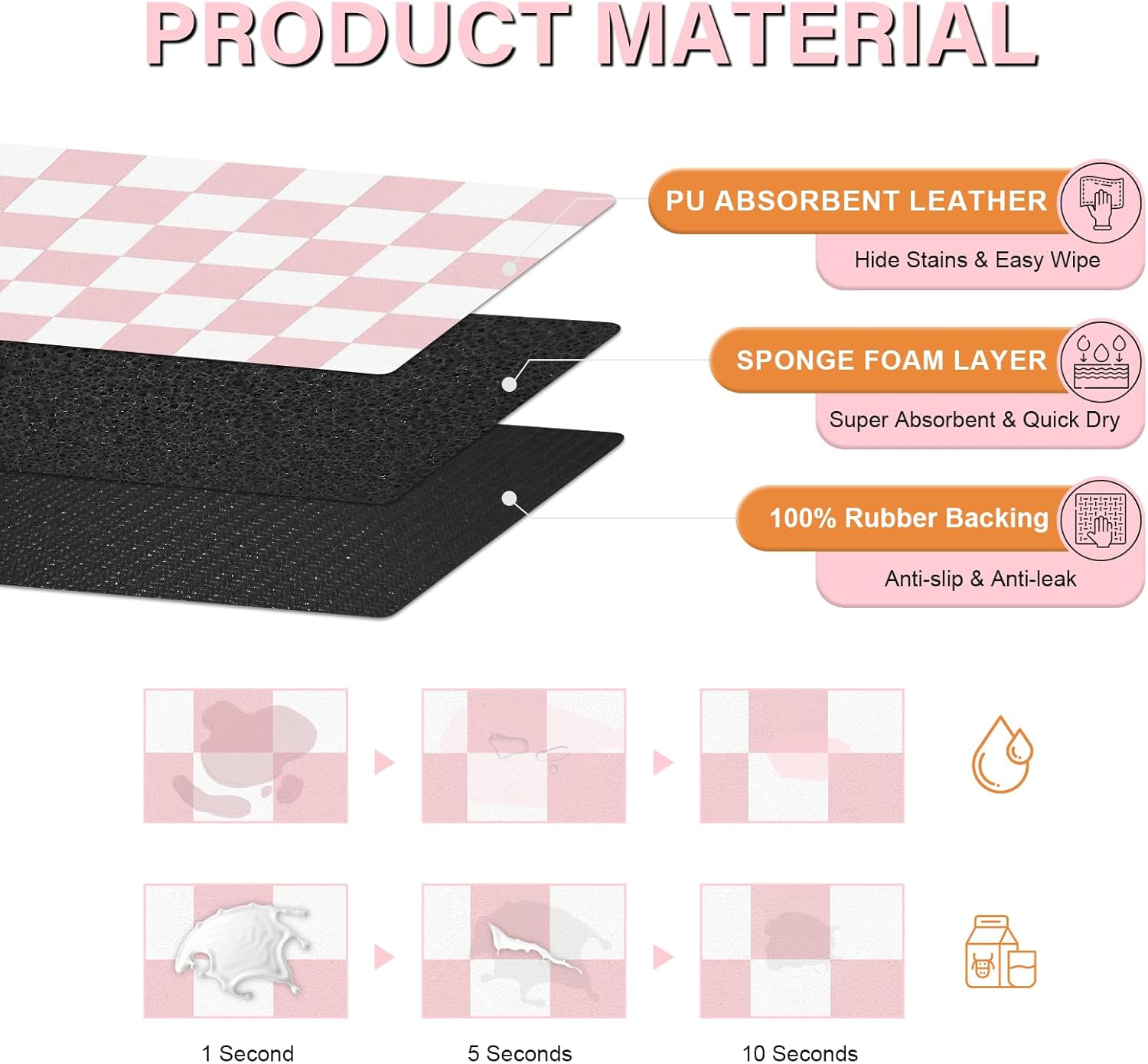 • Absorben & Ultra Easy Cleaning Pet Bowl Mat: Say goodbye to messy floors! Our waterproof water bowl mat with vegan leather surface and sponge layer catches of food spills and water splashes. Simply wipe with a damp cloth - making feeding time more manageable, no longer have to deal with spills and messes on the floor