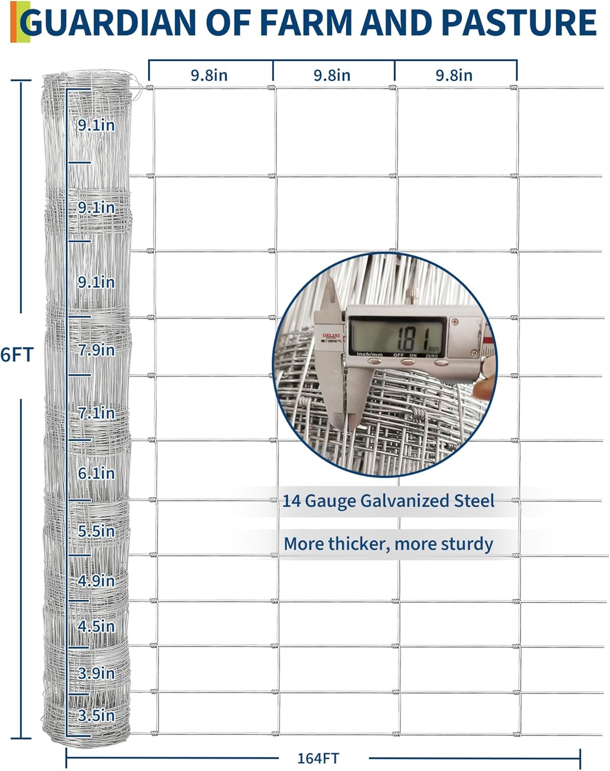 • Robust Construction: Our cattle fence is crafted from high-quality 14 gauge galvanized steel wire, and has exceptional strength and durability, ensuring reliable protection on your farm