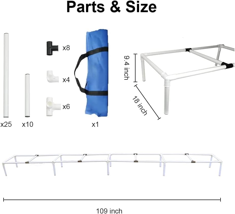 • Dimensions: 9.5 inches high - 18 inches wide - 9 feet long