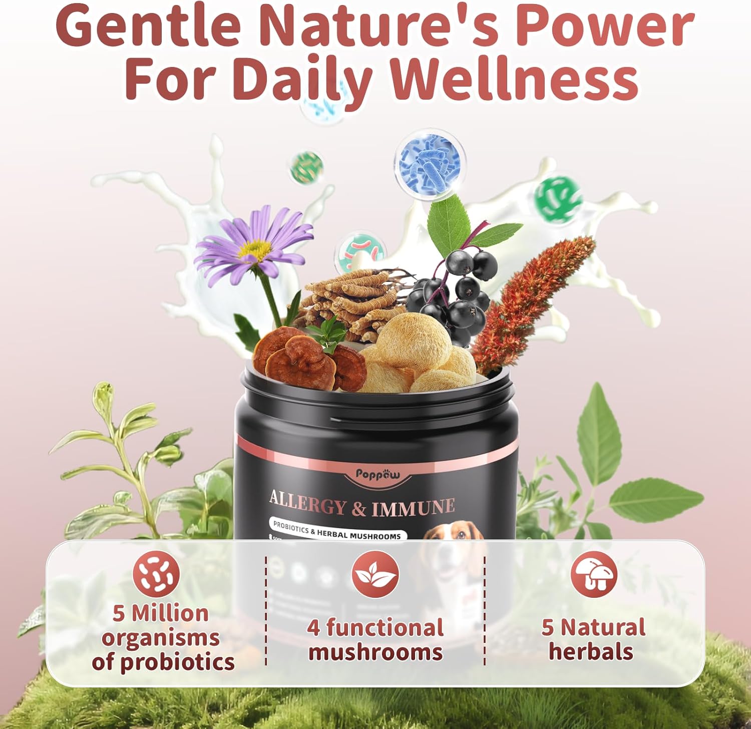 • Nature's Immune Trifecta: Boost your dog's overall immune health with our probiotics supplement featuring ganoderma lucidum, turkey tail mushroom, and echinacea for overall immune support through multiple pathways