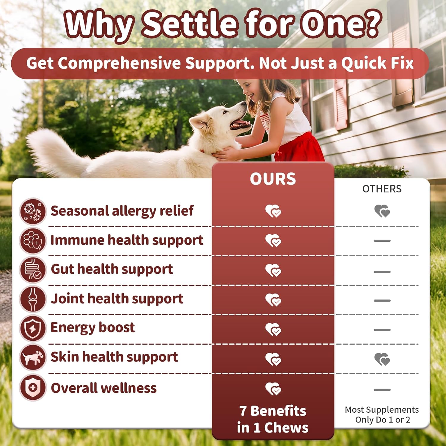 • Tasty & Safe & Natural Chews: Your dog will love our immune and allergy soft chews. Delicious, natural-flavored make wellness a joyful part of your dog's day! And they're a safe, worry-free choice for your dog's long-term health and vitality