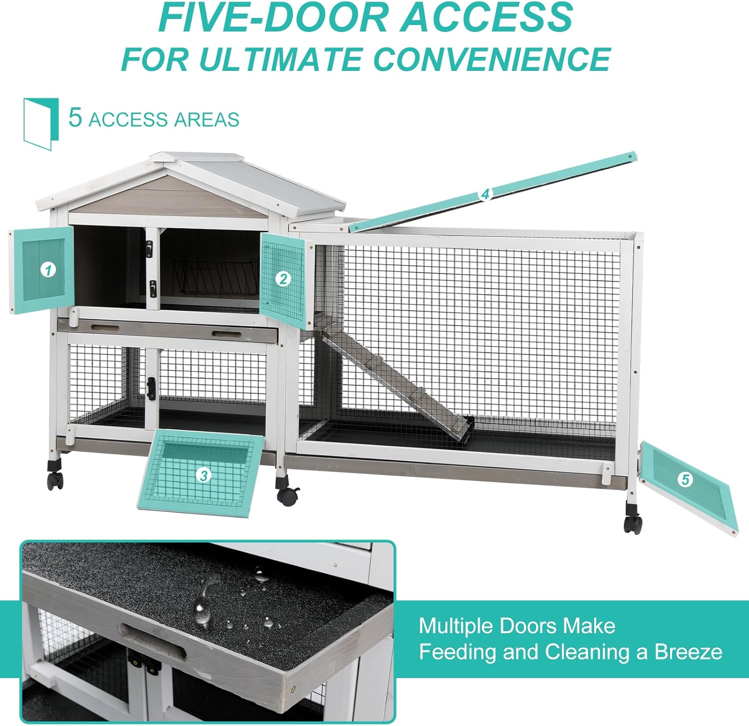 • 【Multiple Doors & Secure Ramp Access】Five front and side doors provide easy entry for feeding and interaction. The textured ramp allows pets to move between levels safely and comfortably