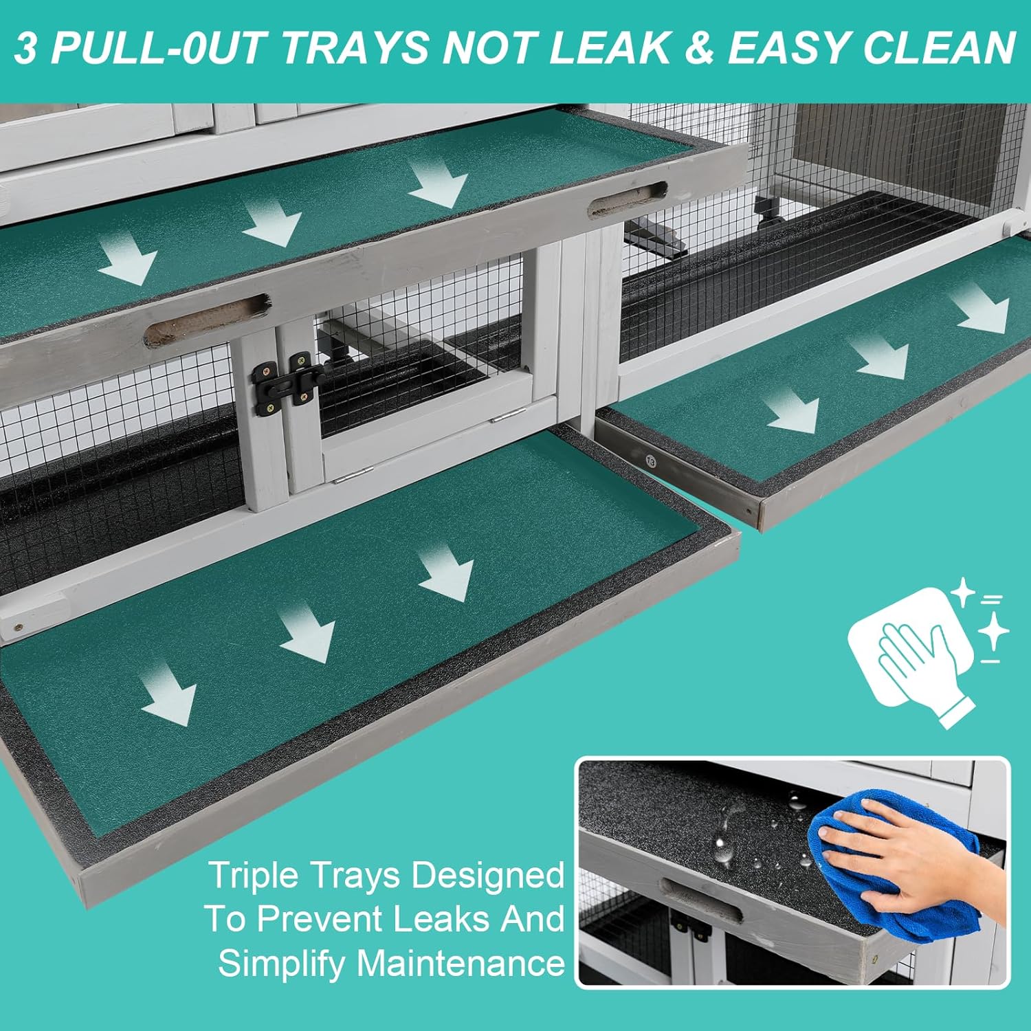 • 【Easy to Clean with Pull-Out Tray】Designed with an extra-deep base to contain messes, the pull-out tray helps prevent leaks and keeps the surrounding area clean. No need to lift the cage—just slide the tray out for fast, hassle-free maintenance
