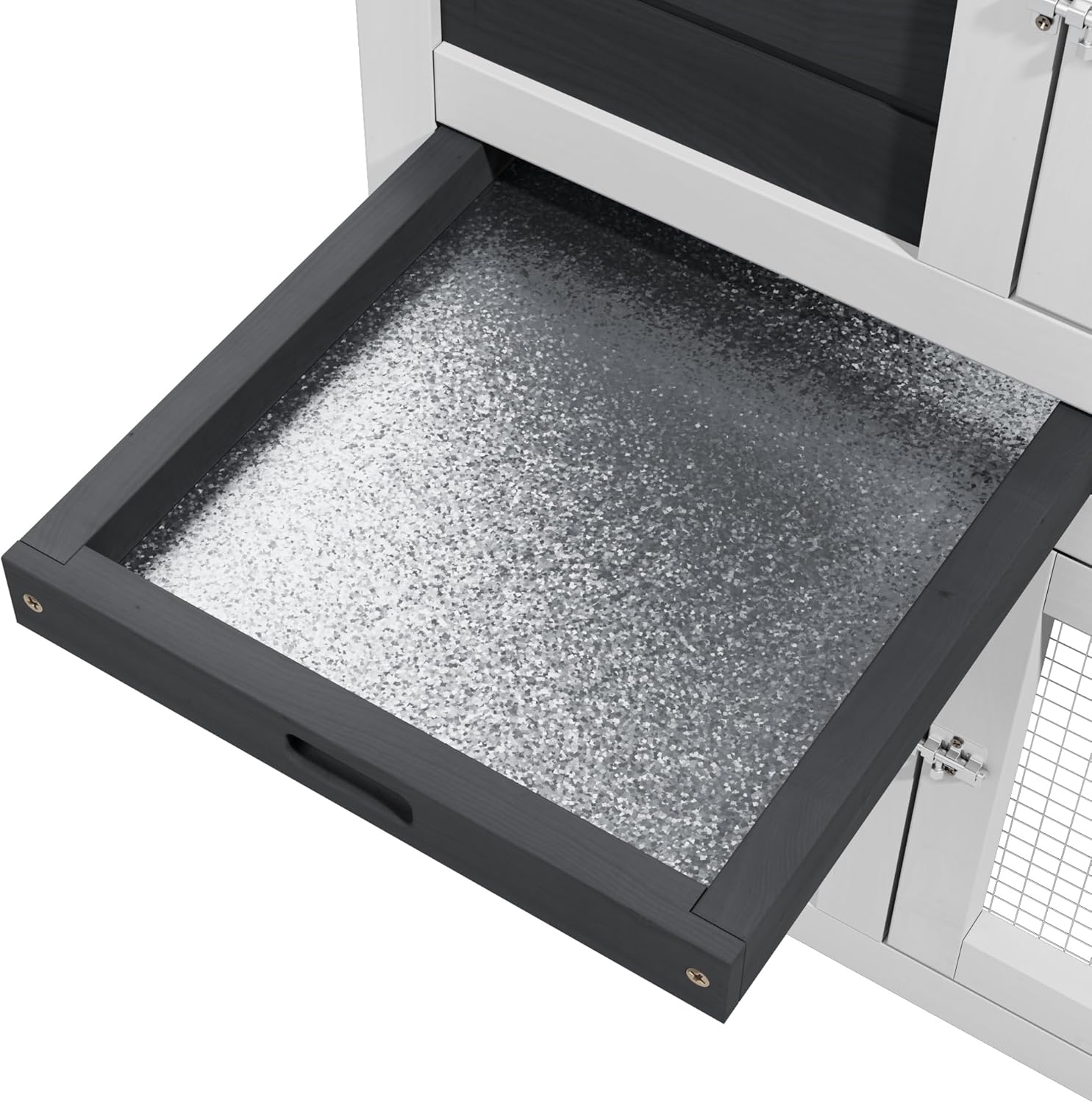 Bunny Cage Premium Rabbit Hutch with Leak-Proof Roof, 2-Story Bunny House for Guinea Pigs & Hamster,Wooden Chicken House with Deep Pull-Out Tray, Waterproof Chicken Coop for Outside (Grey)
