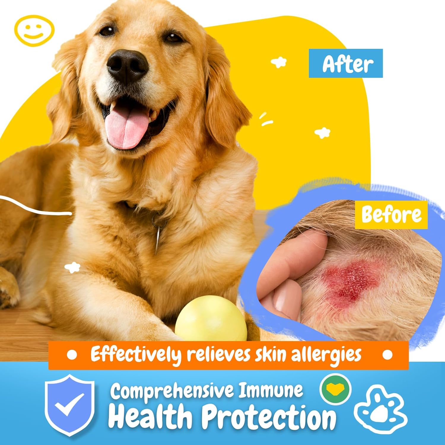 • All-in-One Solution for Allergy & Skin Health: Relieve your pet’s allergy symptoms, from itchy skin to paw licking, with a multifunctional formula that tackles seasonal allergies, supports skin and coat health, and promotes overall comfort using ingredients like Turmeric, Apple Cider Vinegar, and Hemp Seed. These natural ingredients help maintain your pet’s comfort year-round, suitable for dogs of all ages.