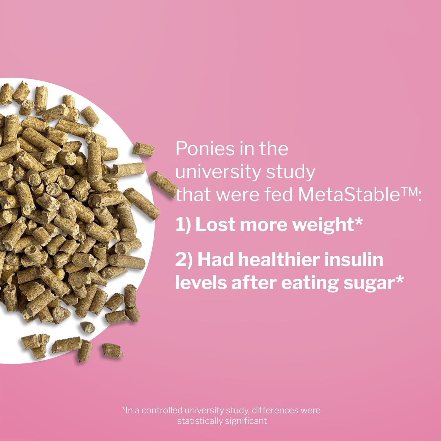 • VETERINARY & UNIVERSITY-STUDIED FORMULA – MetaStable Pellets are backed by research to support horses with Equine Metabolic Syndrome. They were shown to stabilize insulin levels and promote progress towards a healthy weight in just 60 days.