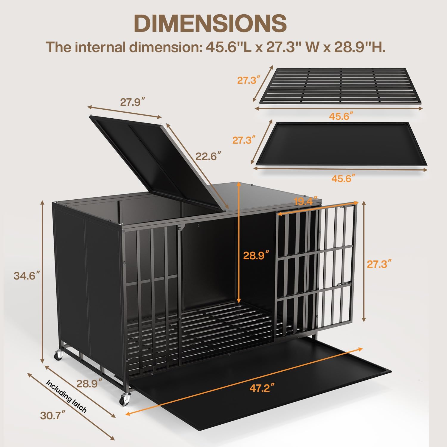 • Two-Door Design for Better Interaction: It is important to build the bond between a dog's owner and dog. That's why we've incorporated a two-door design to make interactions easier—the front door is designed for dogs to enter and exit with ease. The top door gives you a convenient way to feed, interact, and clean the crate without hassle.