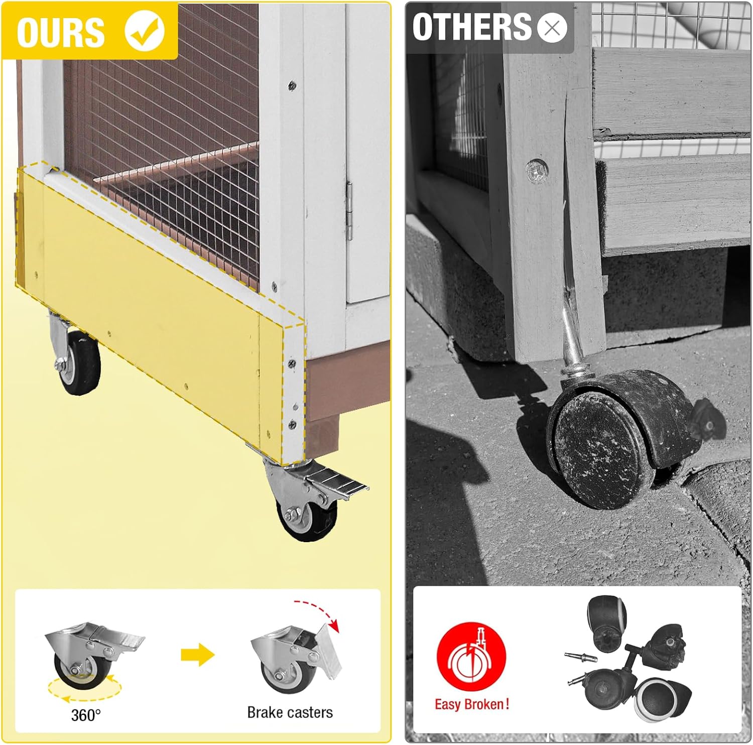 • Easy to Move Around: Four smooth-rolling wheels let you move the hutch indoors or outdoors without heavy lifting, so your pets can enjoy sunshine or shade anytime