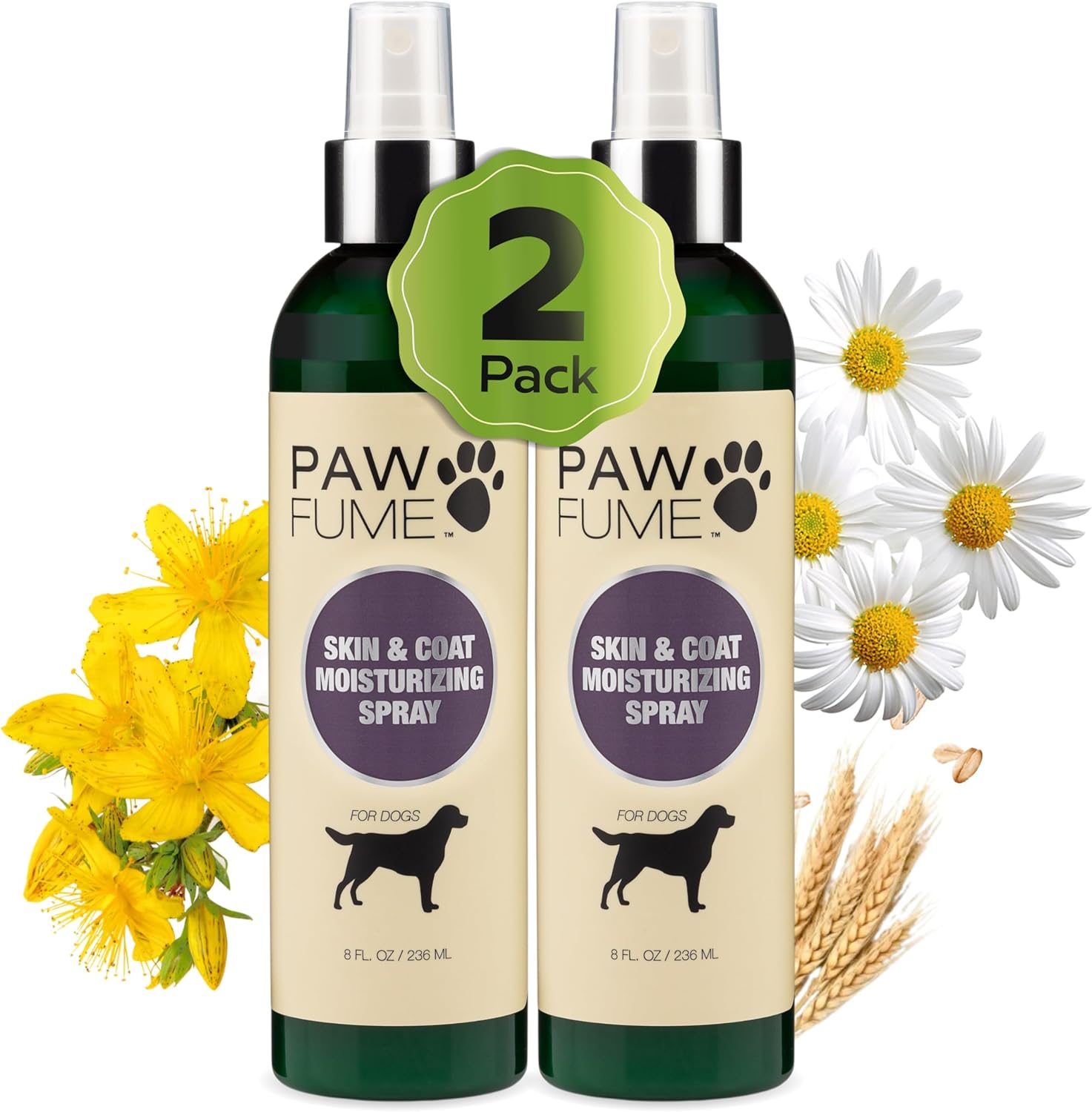 PAWFUME Skin & Coat Detangler Spray for Dogs, 2-Pack – Soothe Dry, Itchy Coats Quickly – Non-Toxic Chamomile & Oat Formula, Essential Fatty Acids & Vet-Certified – Dog Detangler Spray Dematting Care