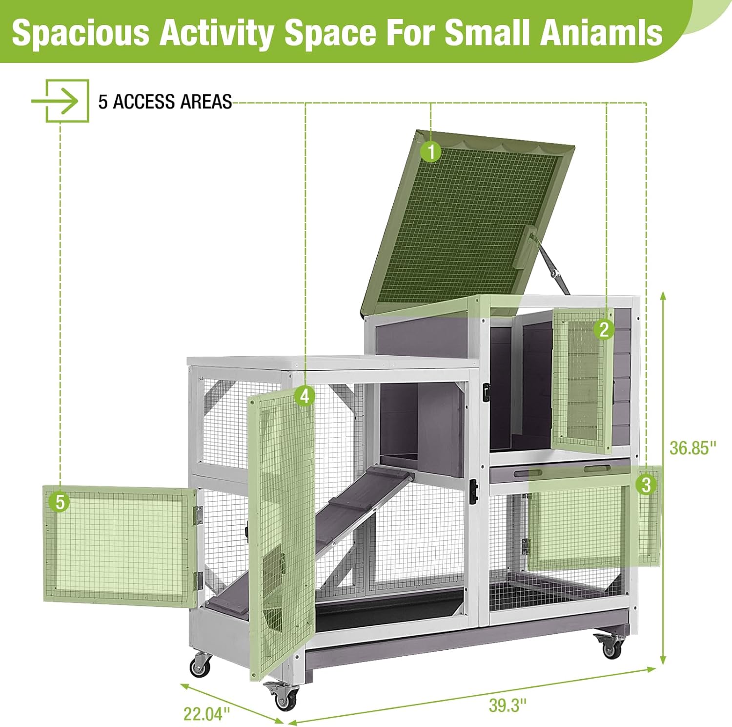 • Easy Access Design: With multiple entry points, our rabbit cage ensures your pet can move about freely and safely. The second floor's sliding doors make it simple to separate spaces when needed