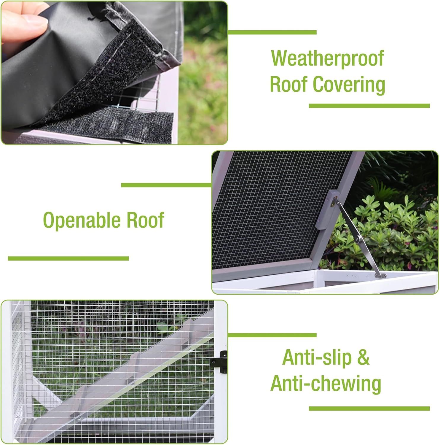 • Indoor and Outdoor: The openable roof allows for easy feeding and interaction. Plus, the waterproof covering shields your pet from the weather and offers shade, making this hutch perfect for both indoor and outdoor use