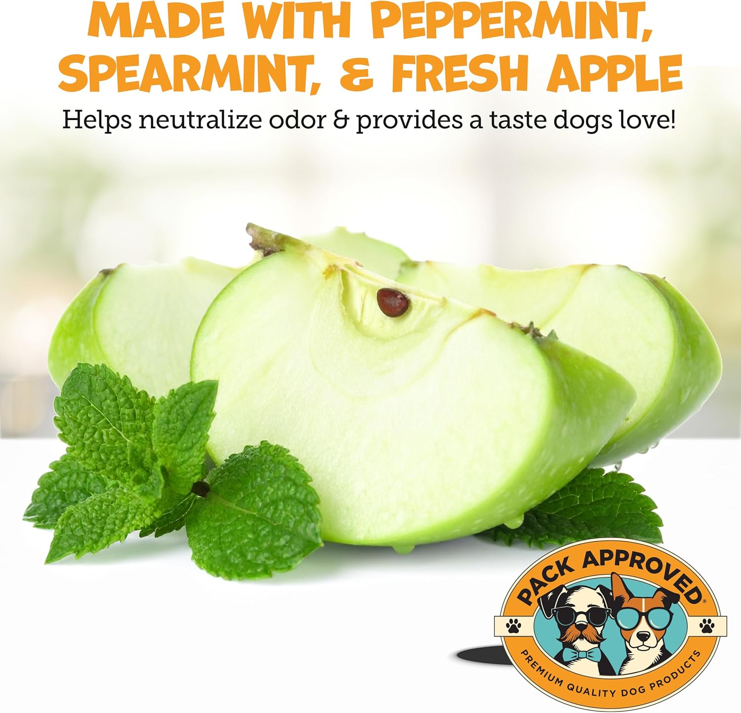 • No More Dog Breath: Our Fresh Apple and Mint-scented dog dental wipes keep your dog’s breath fresh and clean. These easy-to-use pet dental wipes support daily oral hygiene for a healthier, happier pup