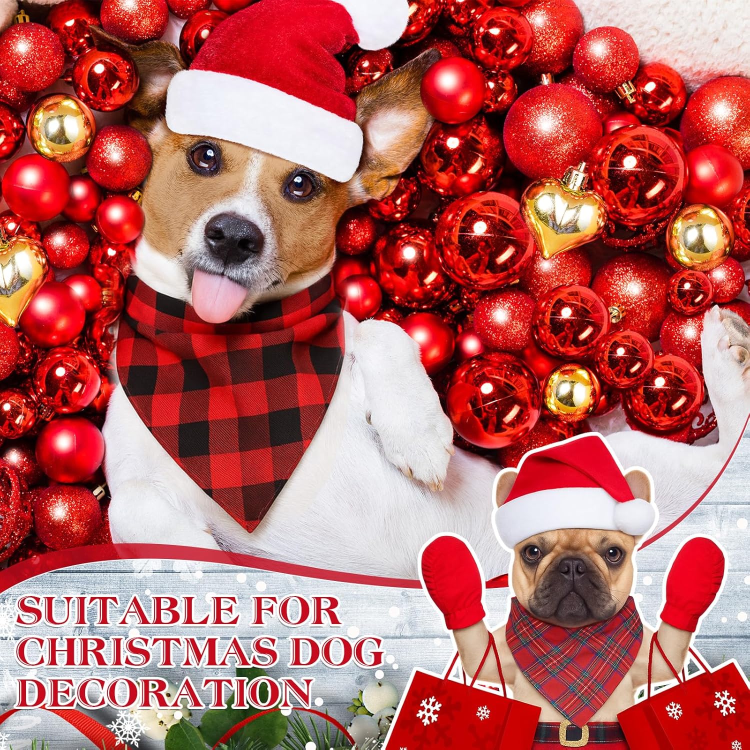 100 Pcs Christmas Dog Bandanas Bulk Xmas Red Plaid Bandanas Soft Triangle Bibs Adjustable Scarf for Small Medium Large Pets