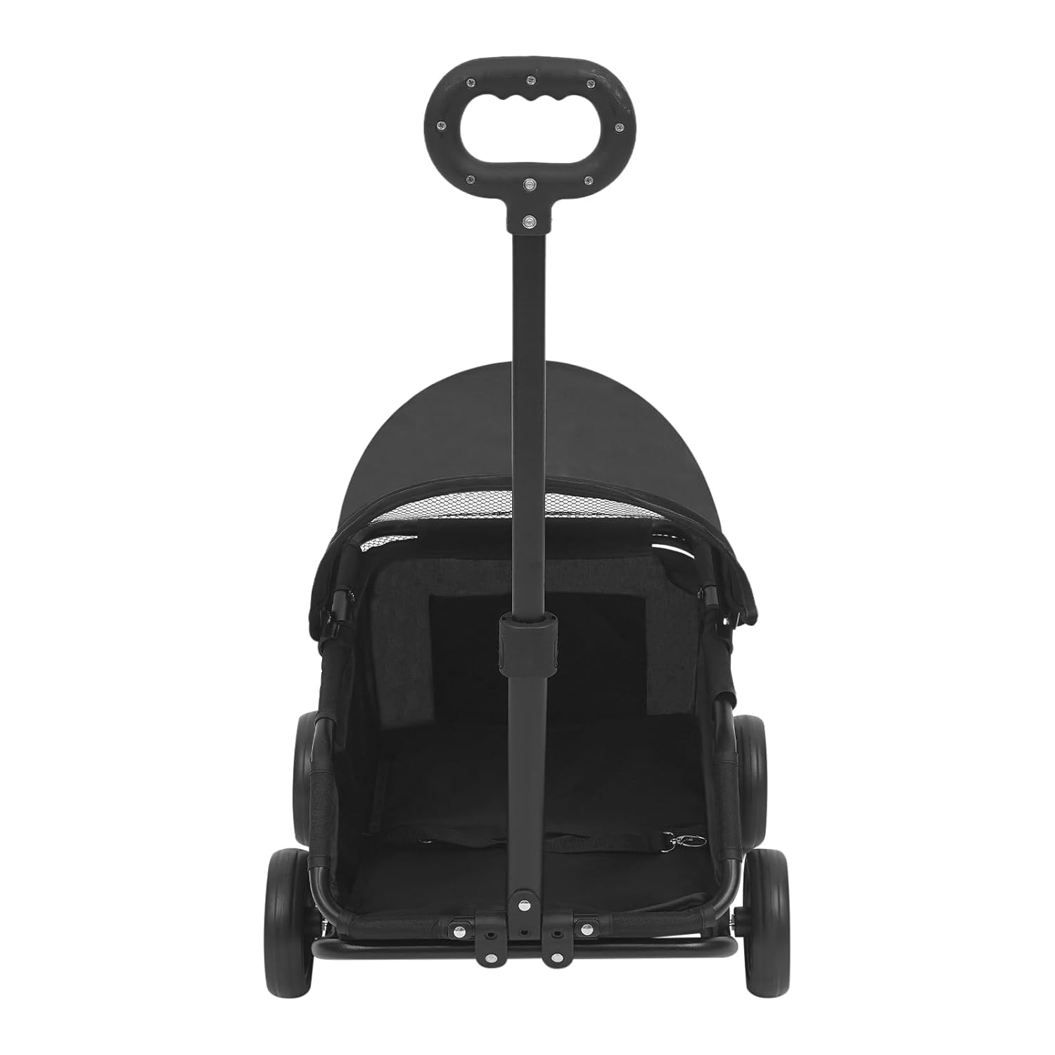 • 🐕Safety Features: Enjoy effortless control with an ergonomically designed, height-adjustable handle and four smooth-rolling wheels that ensure easy maneuverability on varied surfaces. An integrated safety belt keeps curious or energetic pets securely in place, preventing jumps or falls, while the sturdy frame offers reliable stability during movement