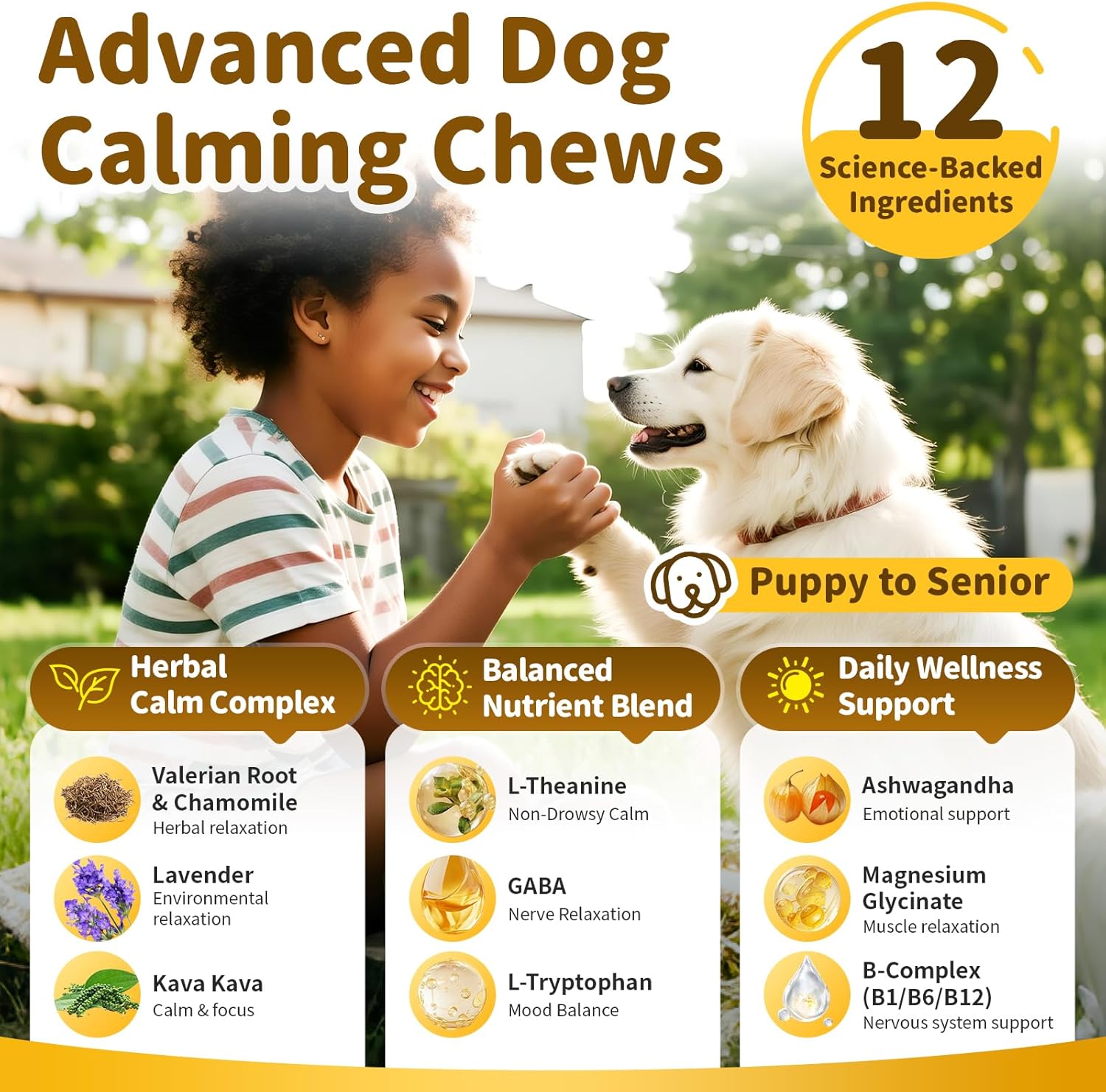 • Safe Daily Calming Support for Dogs & Puppies: Each chew is precisely dosed for small, medium, and large breeds from 12 weeks old. For best results, use consistently as part of your dog’s wellness routine, supporting relaxation, calm focus, and normal energy levels.