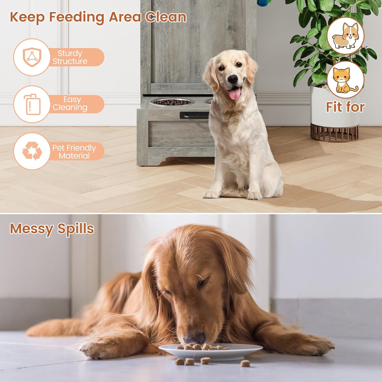 • Easy Assembly & Maintenance: Quick 15-minute setup with included hardware and tools, the sturdy design supports a large amount of pet supplies, providing a stable and secure feeding station for your dog.
