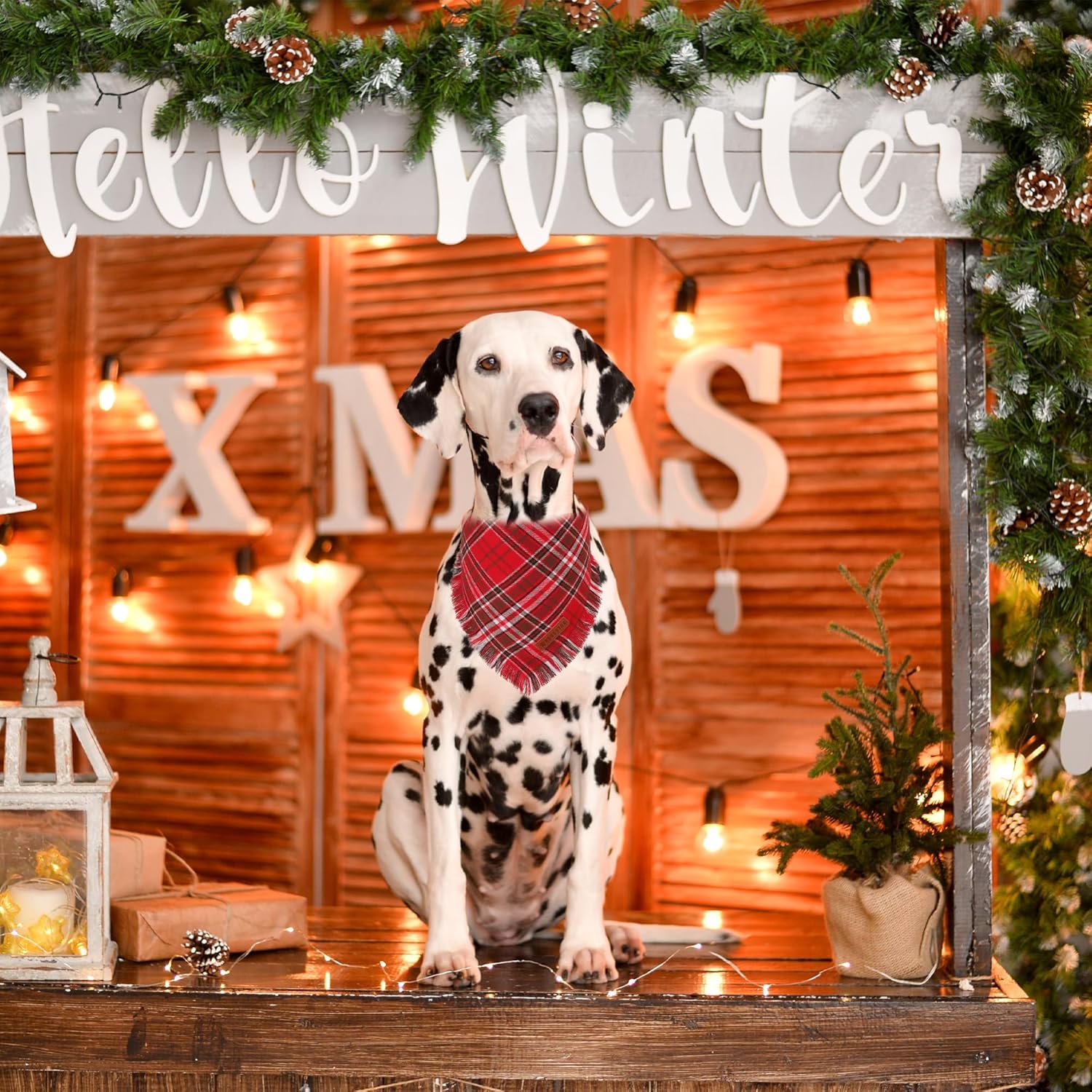 • Package: 2 * red plaid dog christmas bandanas for medium large dogs. This Christmas pet bandana set is a great gift to make your pet look lovely during the holiday season. Celebrate Christmas with your furry friend in style!