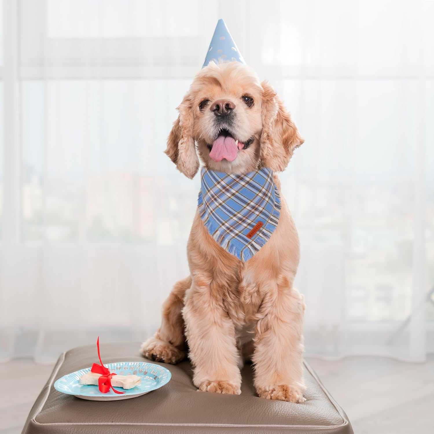 • Package: 1 * bold blue checkered dog bandana, 1 * light blue plaid dog bandana, A fantastic gift for owners of boy dogs—dress up your furry friend in stylish blue attire, or share the cool style with other dog lovers!