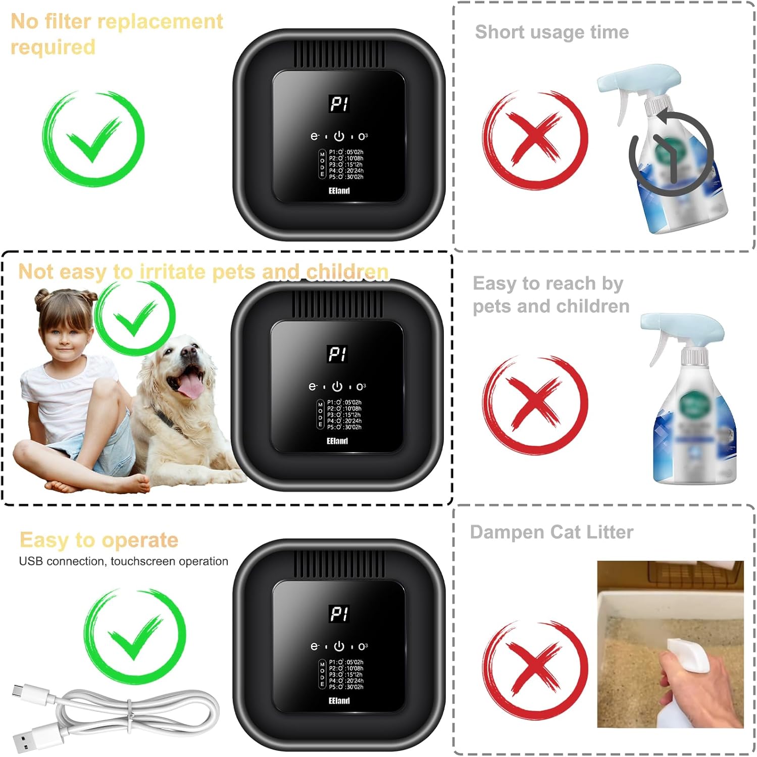 • 3-in-1 Air Freshening Solution with Optional Light Scent - This all-in-one device is the ultimate litter box deodorizer. It combines three powerful actions: 1) Ozone-based odor neutralization (a safe, effective ozone odor eliminator), 2) Negative ions to refresh the air, and 3) An optional aroma block for a light, pleasant scent, making it a comprehensive cat odor eliminator for home.
